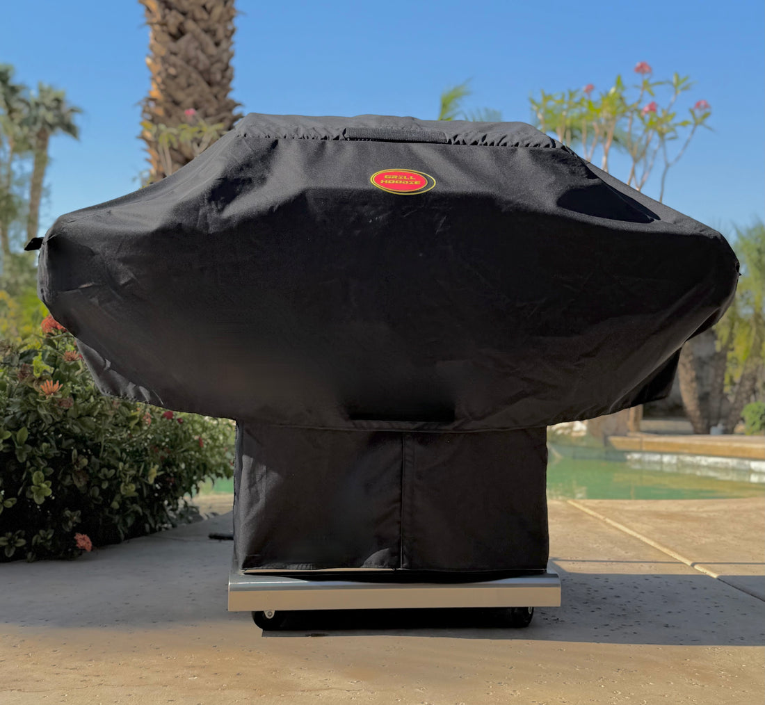 The first of its kind, Grill Hoodie is a patented, free-standing 2-piece cover that takes the hassle out of covering your grill. An upper section covers the dome and wings, and an adjustable lower vest opens in the front for easy access and is completely detachable. Fits most grills 55"-65".